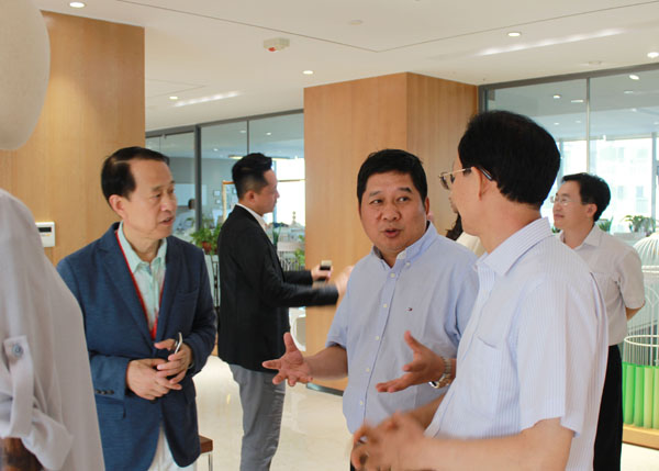 慕镕鍵董事長陪同張耀平一行參觀了聯(lián)橋集團總部,并對公司的發(fā)展情況進行了介紹。張耀平對聯(lián)橋集團多年以來穩(wěn)扎穩(wěn)打、穩(wěn)健發(fā)展表示肯定,對聯(lián)橋集團以“感恩 責任”為核心價值觀的文化體系,建設幸福企業(yè)、誠信立企的理念表示贊賞。慕镕鍵董事長感謝農(nóng)業(yè)銀行多年以來的信任和支持,希望雙方可以進一步加強合作,實現(xiàn)全面互利共贏。