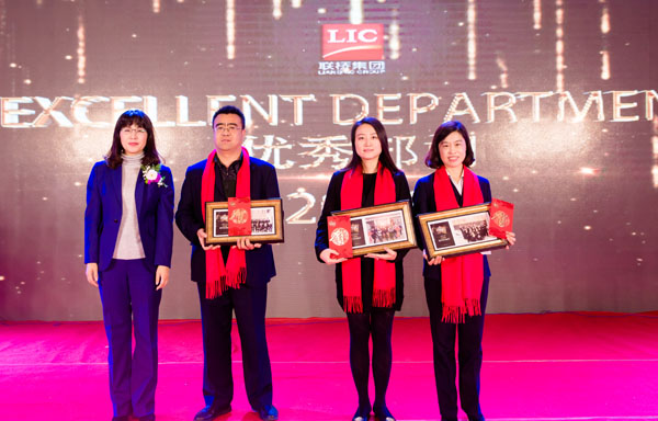 年會第一項,由集團公司董事慕衛(wèi)波宣讀表彰先進決定,莊嚴隆重的頒獎典禮正式開場。雄壯渾厚的音樂回蕩在會場大廳,震撼人心;鏗鏘有力、滿含深情的頒獎詞,高度凝練呈現(xiàn)了2016年度“卓越貢獻獎”、“明星部門”、“先進部門”、“優(yōu)秀部門”、“發(fā)展部門”等獲獎部門的閃光點;閃耀著金屬色光芒的頒獎畫面,引起強烈的視覺沖擊,將榮耀盡顯其中。先進個人身披紅圍巾,精神抖擻,喜氣洋洋地依次上臺領獎,集團領導班子集體頒獎。骨干部門與優(yōu)秀員工,支撐了公司各個事業(yè)版塊的發(fā)展,代表著聯(lián)橋人的艱辛和擔當,折射出聯(lián)橋人的責任和力量。