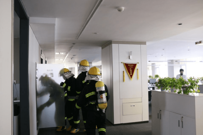 當(dāng)天15時(shí),聯(lián)橋集團(tuán)安全部長(zhǎng)、消防疏散演練總指揮宋杰一聲令下,演練正式拉開帷幕。首先,18樓會(huì)議室發(fā)現(xiàn)“火險(xiǎn)”并發(fā)出火警報(bào)警信號(hào),樓層負(fù)責(zé)人第一時(shí)間上報(bào)“火情”,按照應(yīng)急預(yù)案采取措施;隨后,各演練工作組接到通知后都迅速反應(yīng)到位,以本樓層員工消防志愿者為第一梯隊(duì),取用本樓層現(xiàn)有滅火器展開滅火救援,集團(tuán)滅火救援組也馬上到位支援,利用滅火器和室內(nèi)消防栓對(duì)“火場(chǎng)”滅控,最終成功控制撲滅“火情”。