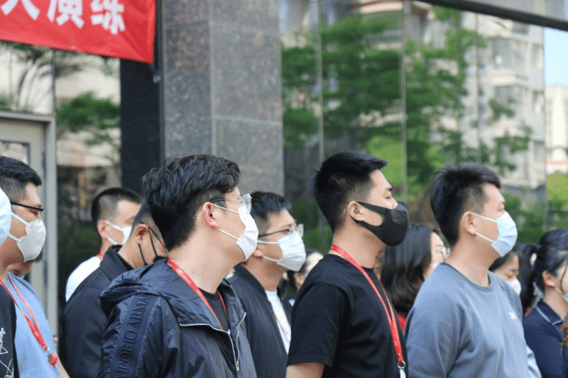 與此同時(shí),應(yīng)急廣播在接到“火情”第一時(shí)間響起,相關(guān)樓層員工聽到廣播在安全員的指揮引導(dǎo)下,快速有序地集體撤離至安全集合點(diǎn),由相關(guān)負(fù)責(zé)人統(tǒng)計(jì)清點(diǎn)人員。